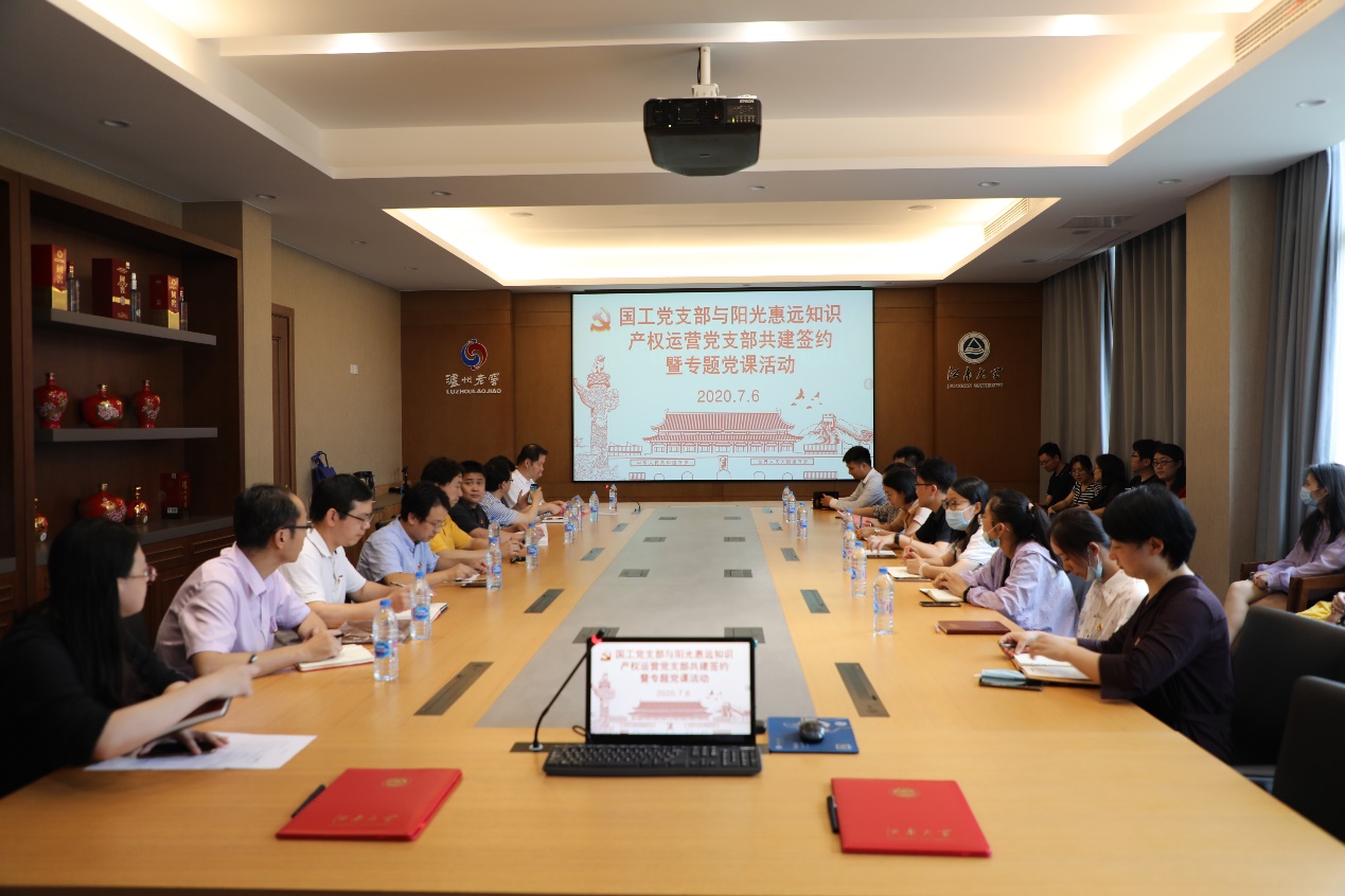 党委书记王维为两个支部的所有党员同志上了一堂题为 “历史之遇与现实之思——全球疫情危机背景下的大国担当” 的党课。阳光惠远知识产权运营有限公司总经理张勇、国家工程实验室常务副主任李兆丰、副主任饶志明、陆震鸣、 中国AV