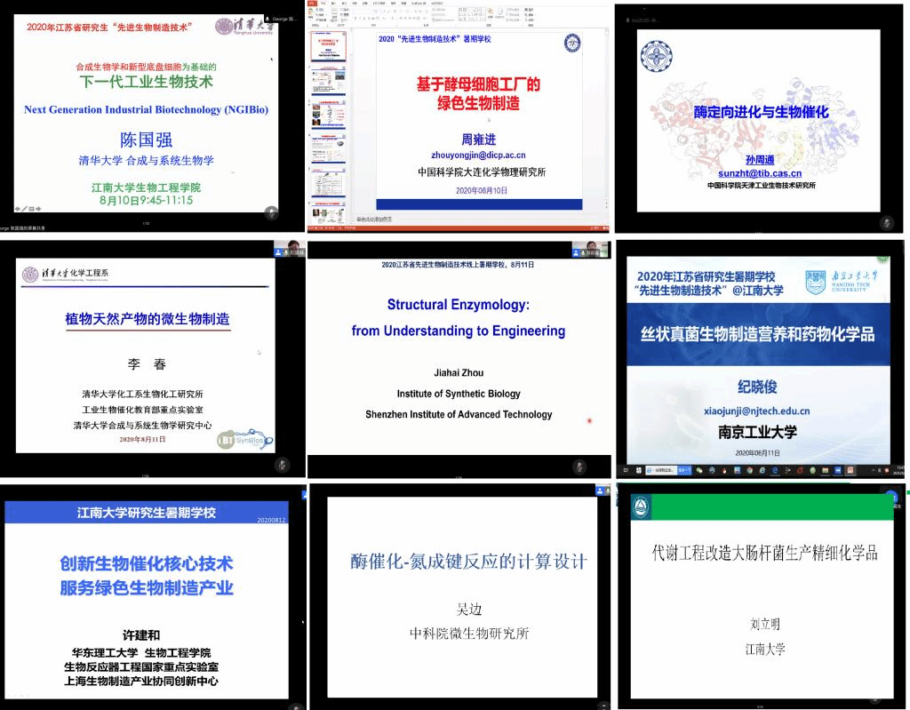 承办的2020年江苏省研究生“先进生物制造技术”暑期学校以在线方式成功举行,本届暑期学校共邀请了国内9名知名专家授课,吸引了来自全国各高校的75名学员参加。