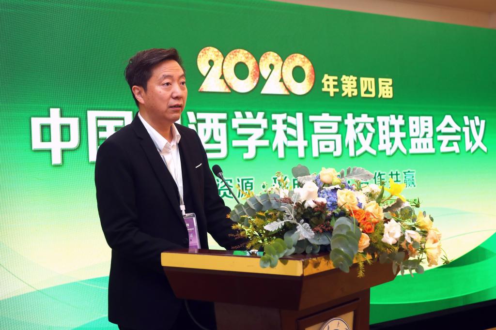党委常委、副校长徐岩致欢迎辞,他代表学校对大会的召开表示祝贺,并介绍了学校发展概况,希望通过交流共享,能够凝聚共识,最终合作共赢,共同推动酿酒学科高校联盟不断发展。中国酒业协会秘书长何勇在致辞中指出,要促进协产学研融合,打造酿酒学科一体化建设,要加强学科体系标准化建设,培养酿酒全方位人才,要加强国际交流,提升我国酿酒学科竞争力与影响力。中国酿酒学科高校联盟秘书长罗惠波在致辞中建议各联盟成员应积极应对后疫情时代的影响,扎实推进“双万计划”的建设以及深入开展交流合作,实现融合发展,开好局、起好步、履好责。