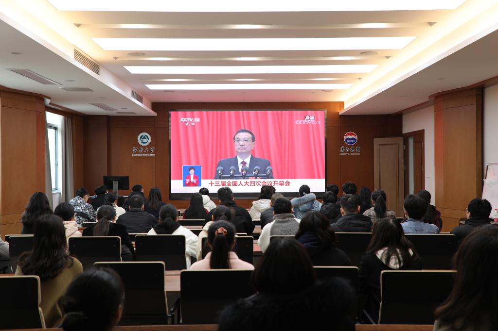 组织师生通过线上线下收看开幕会直播,学习热议全国两会和政府工作报告,师生反响热烈,深感使命光荣、责任重大。