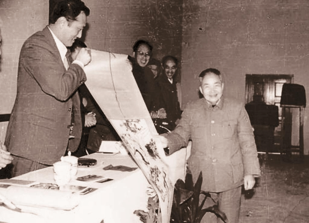 朱宝镛教授八十大寿轻工业部陈士能副部长赠梅鹤国画,1985(下图)