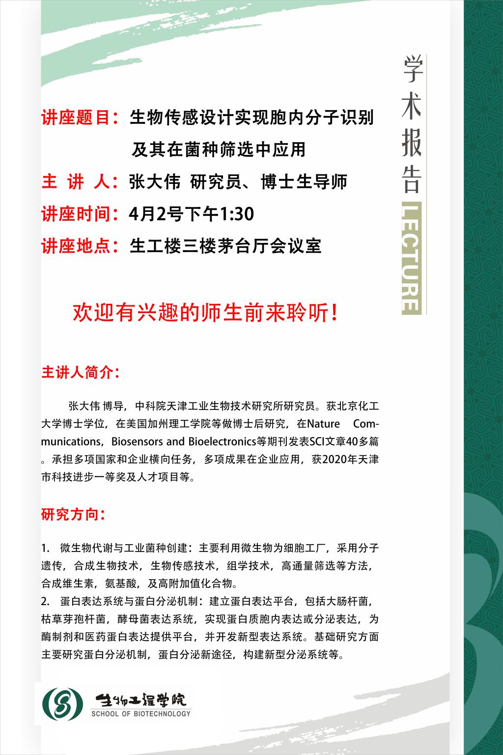 上一篇:4月13日学术报告:生物制造途径从头创新技术体系构建