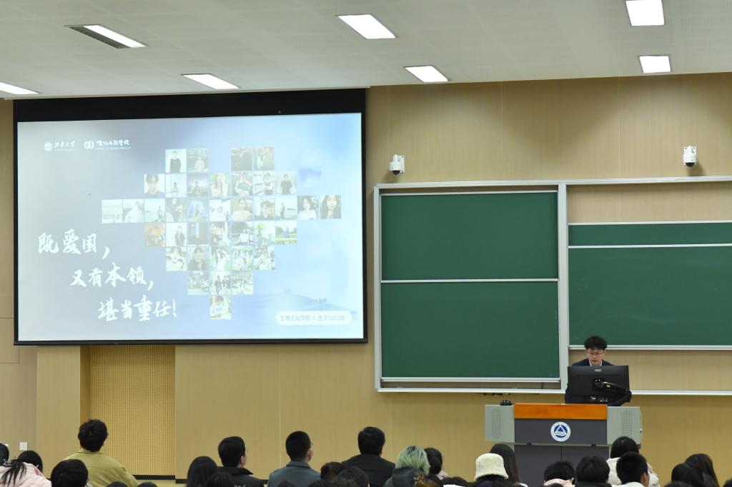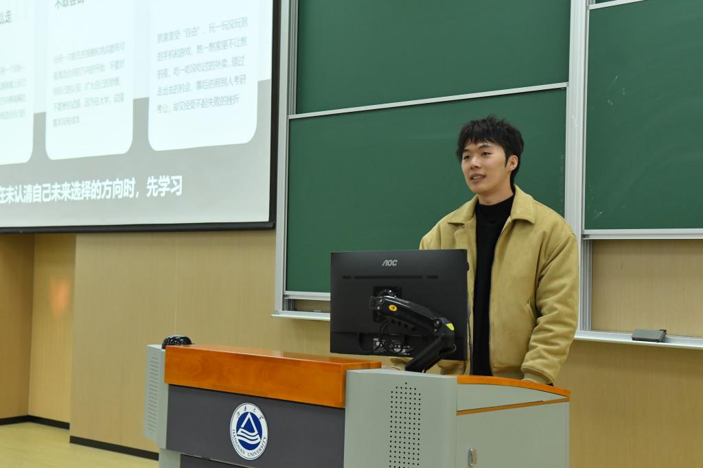 2024年国家奖学金获得者赵东琳以《大学,请找到你的热爱》为题,讲述了大学三年不同阶段应当如何确立学习目标、如何开展科研项目、如何丰富学生工作等内容,并寄语每一位追梦人要坚持不懈,未来定能一路生花。个人的优秀与宿舍集体的努力分不开,良好的宿舍氛围与宿舍成员个人发展相辅相成。中国AV 2024年先进宿舍代表刘怡然、杨乔英华、张晓燕和李娜集体分享了81-517宿舍共同努力与成长的故事。她们相约一同去图书馆学习、养成良好作息规律,共探学习上的难题与要点,实现了全宿舍综合奖学金、科创竞赛、体育比赛获奖全覆盖。涓涓细流汇成海,点点星光汇如炬。中国AV 2023-2024学年先进(文明)班集体标兵代表陶孟瑞分享了生工2101班集体的奋进历程。他将班集体的成长比作蛋白质合成,以“汇聚-串联”“交织-辐射”“凝结-生华”三个阶段生动形象地展示了班级在大一、大二和大三阶段的积累收获。从相遇到相识,生工2101全体同学齐心协力,取得了班级成员学年平均绩点3.12、班级累计奖学金17万、科创竞赛100%覆盖、省级社会实践团队等优秀成绩与荣誉。