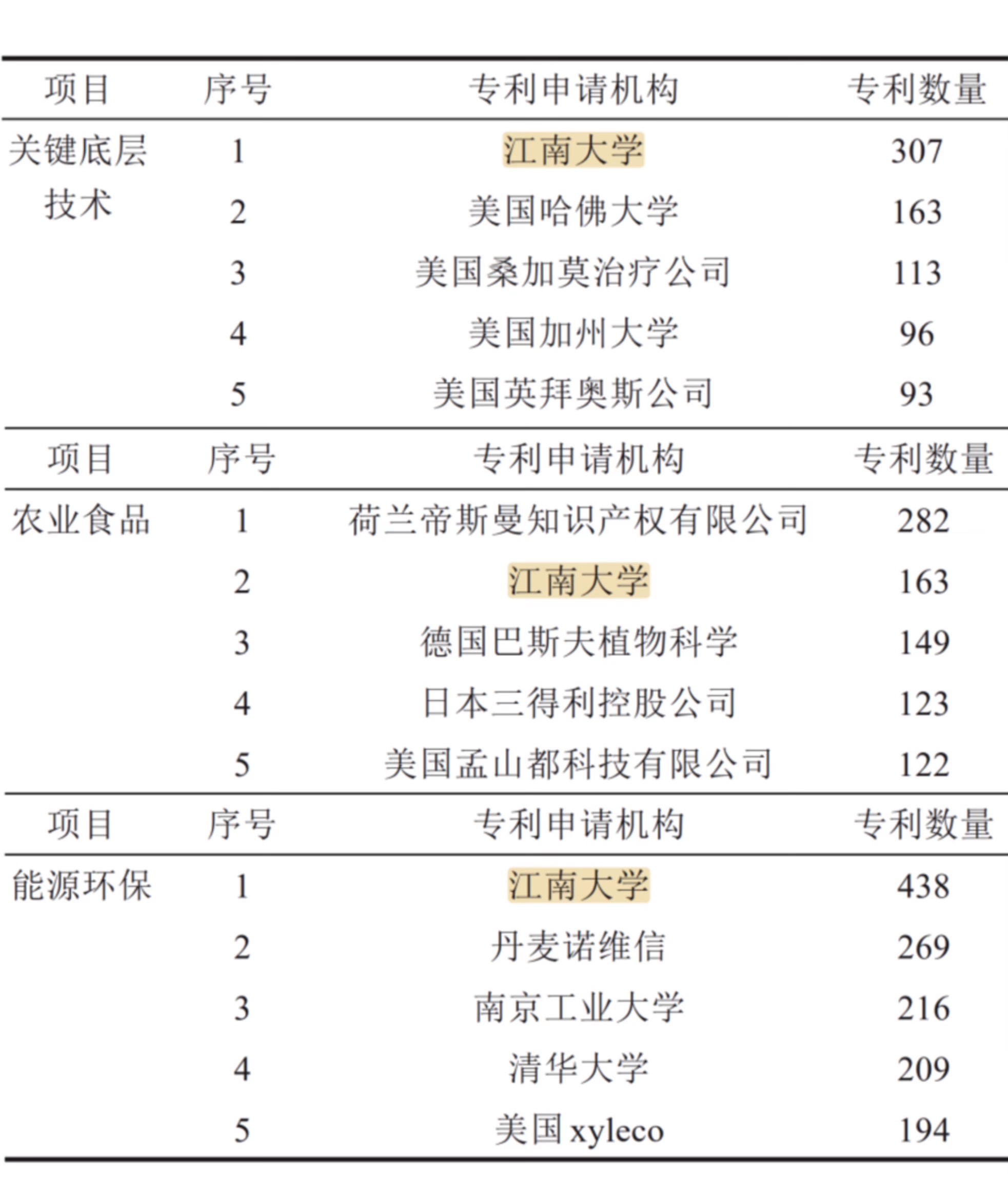 在合成生物技术的“关键底层技术”与“能源环保”两大领域的专利数量位列全球第一,“农业食品”领域专利数排名全球第二(表3)。