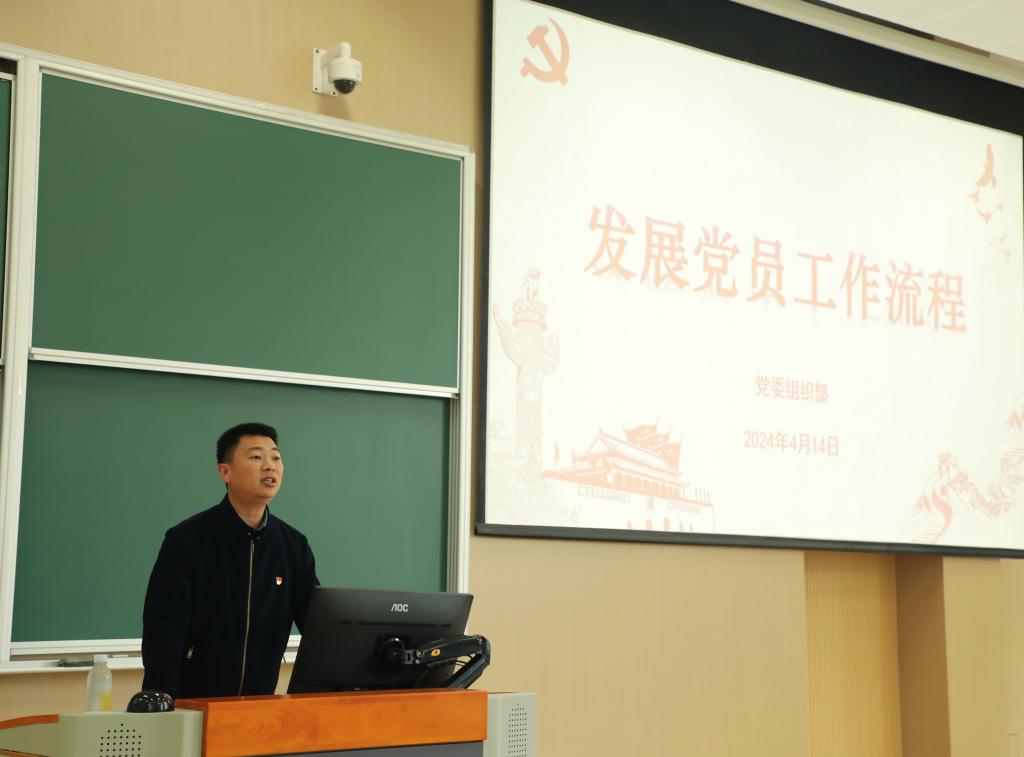 党委组织部林增主讲,他针对党员发展工作流程进行细致解读,从入党积极分子的确定和培养教育、发展对象的确定和考察、预备党员的考察和转正等方面入手,带领参训学员逐步理清入党流程及各环节注意事项,对于引导学员进一步坚定共产主义远大信仰和中国特色社会主义伟大信念具有重要指导作用。
