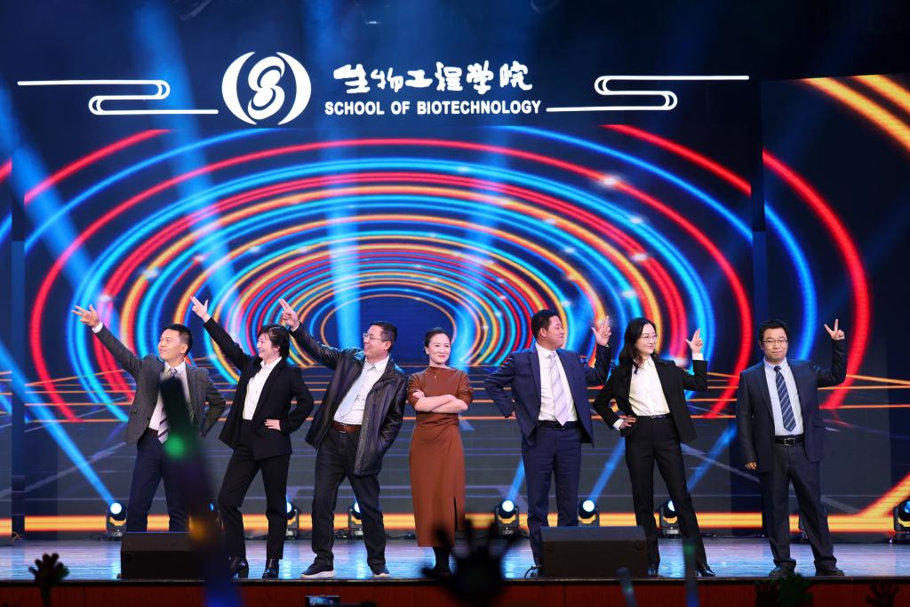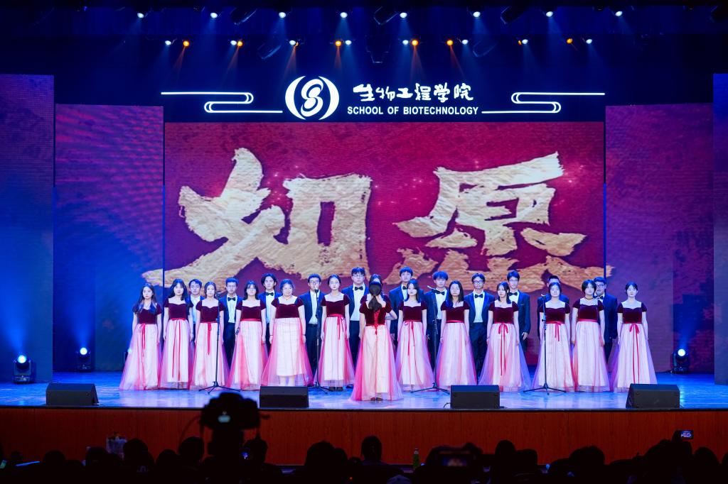 第三篇章,面向未来、山海之志。同奋进、共筑梦,朗诵《我与江南共奋进》将生工教师的奉献心和生工学子的奋进心凝结于跳动的文字间;舞蹈《Sweet Juice》带领观众共同感受青春的力量;歌舞《爱的力量》由教职工及子女与小合唱团共同演绎,以对唱、舞蹈、合唱的形式礼赞这世间最无私的母爱;由2023级本科生合唱团带来的《如愿》,用清澈的歌声致敬最伟大的祖国;终章群舞合唱《保持童真》引发全场共鸣,将晚会氛围再一次推向高潮。