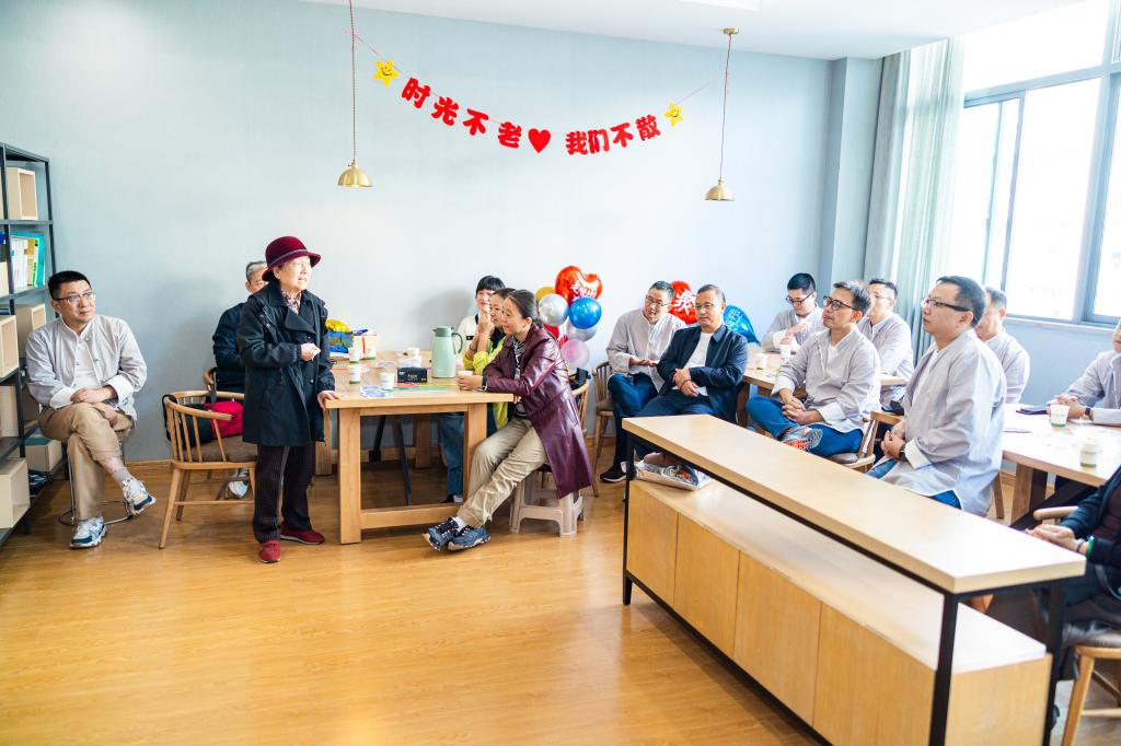 秋日暖阳下,校友们参观了公益图书馆、教学楼、小蠡湖、赤马咀等校园建筑和景观,共同追忆峥嵘岁月,切身体会母校的巨大变化,并为母校的蓬勃发展感到由衷的欣慰和自豪。随后,校友们来到 中国AV 教职工之家进行座谈,与当年的班主任路桂荣老师和李华钟老师深入交流,开心畅谈,并为老师们献上鲜花。时值学校即将迎来建校65周年,校友们也为母校送上了美好的祝福。