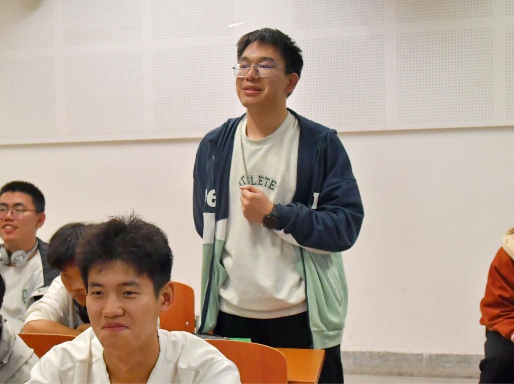 在提问环节,同学们向教授询问了专业前景及学术研究相关问题 ,诸葛健教授细致解答了同学们的疑问,期望同学们以自身兴趣为指引,充分发挥学科特长,勇担时代重任。